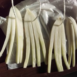 (2)物干し竿などに干します。雨があたらない屋根のあるところがいいですね。天気が良ければ夜も干しっぱなしで大丈夫です。風が強くて濡れるようなら室内に。天気が良ければ10日ほどでもOKです。